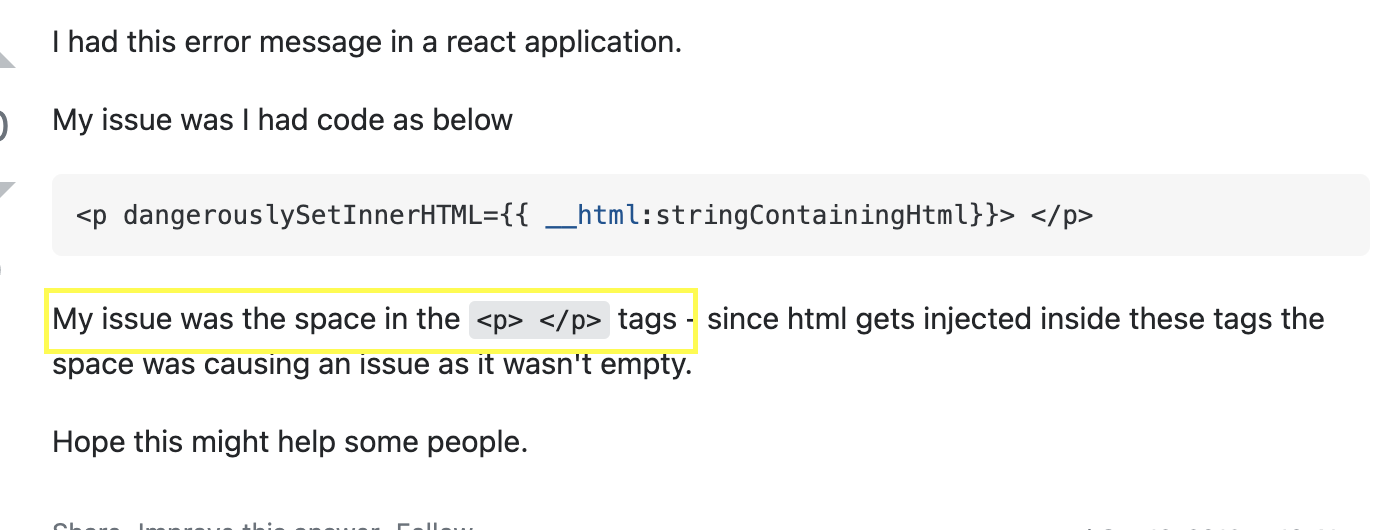 Can only set one of `children` or `props.dangerouslySetInnerHTML`