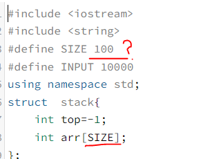 를 무시하고 당당하게 스택의 size 를 100으로 define 하였다. 엄청난 뻘짓이다.