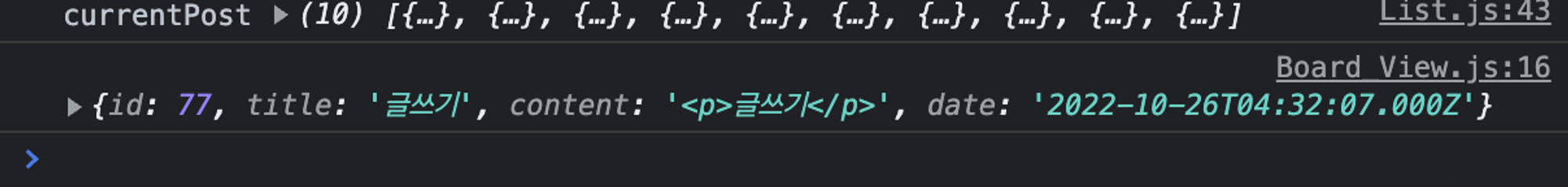 기존에 글 상세 보기 페이지에서 날짜가 출력되도록 했는데 아래와 같이 나오고 있었다콘솔로 찍어보니 데이터 파싱이 잘못 된 것을 알 수 있었다.